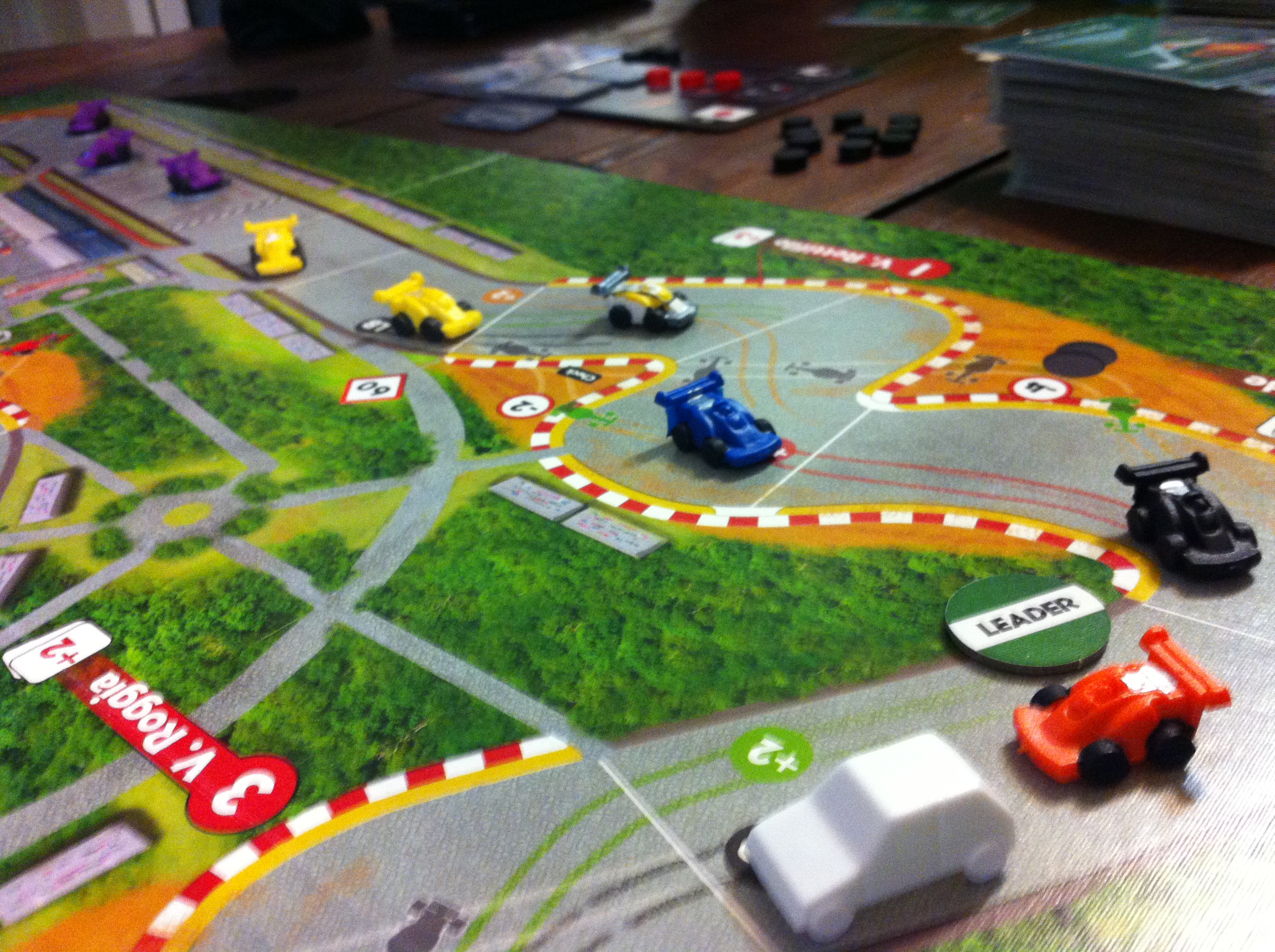 Smette di piovere nell’ultimo trancio di corsa, le auto con le gomme da pioggia decidono di non rientrare ulteriormente ai box ma questo le rallenta ulteriormente quando ormai la vettura nera in testa se ne va a vincere il gran premio. Seconda posizione per la macchina arancio di grandein mentre soltanto quarto McGallons alla guida della sua monoposto blu.